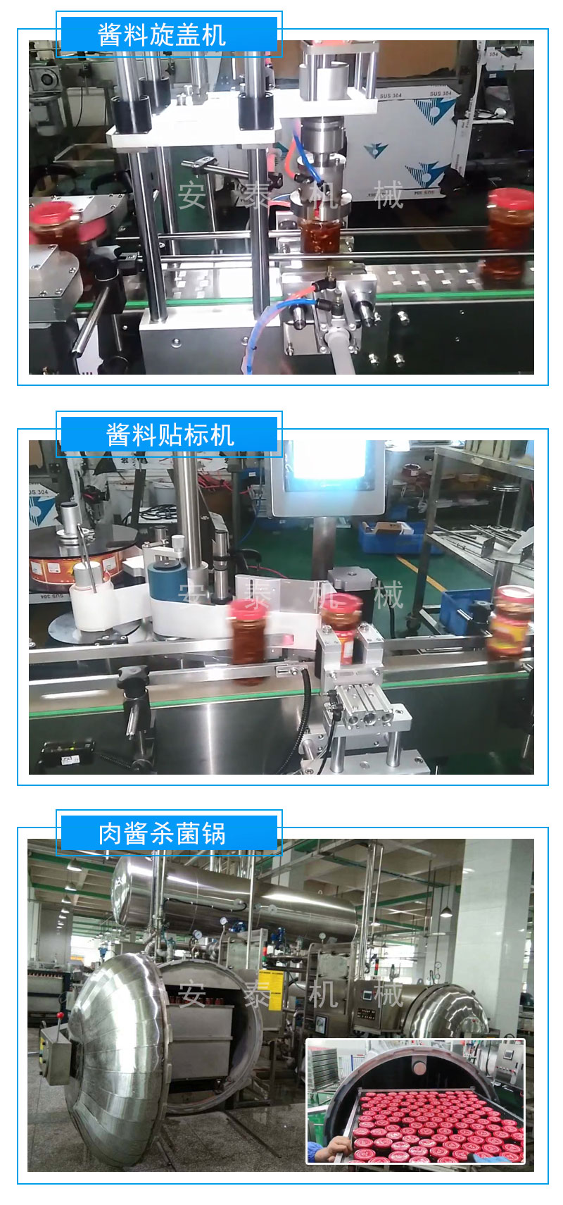 原料加工——炒制——中轉——灌裝——真空旋蓋——殺菌——貼標——噴碼——塑封——裝箱入庫